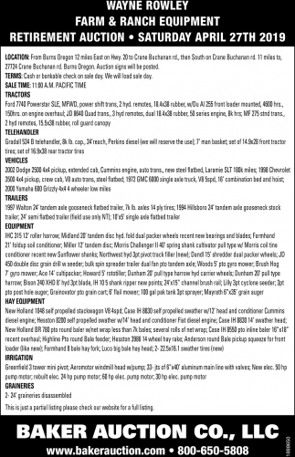 Apr 12, 2019. Baker Auction Co., LLC Auction Ads from Idaho Press Auctions