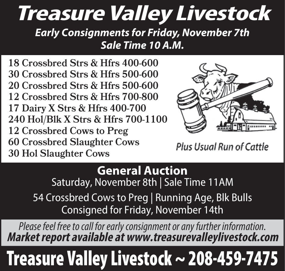 Nov 06, 2025. Treasure Valley Livestock Auction Ads from Idaho Press Auctions
