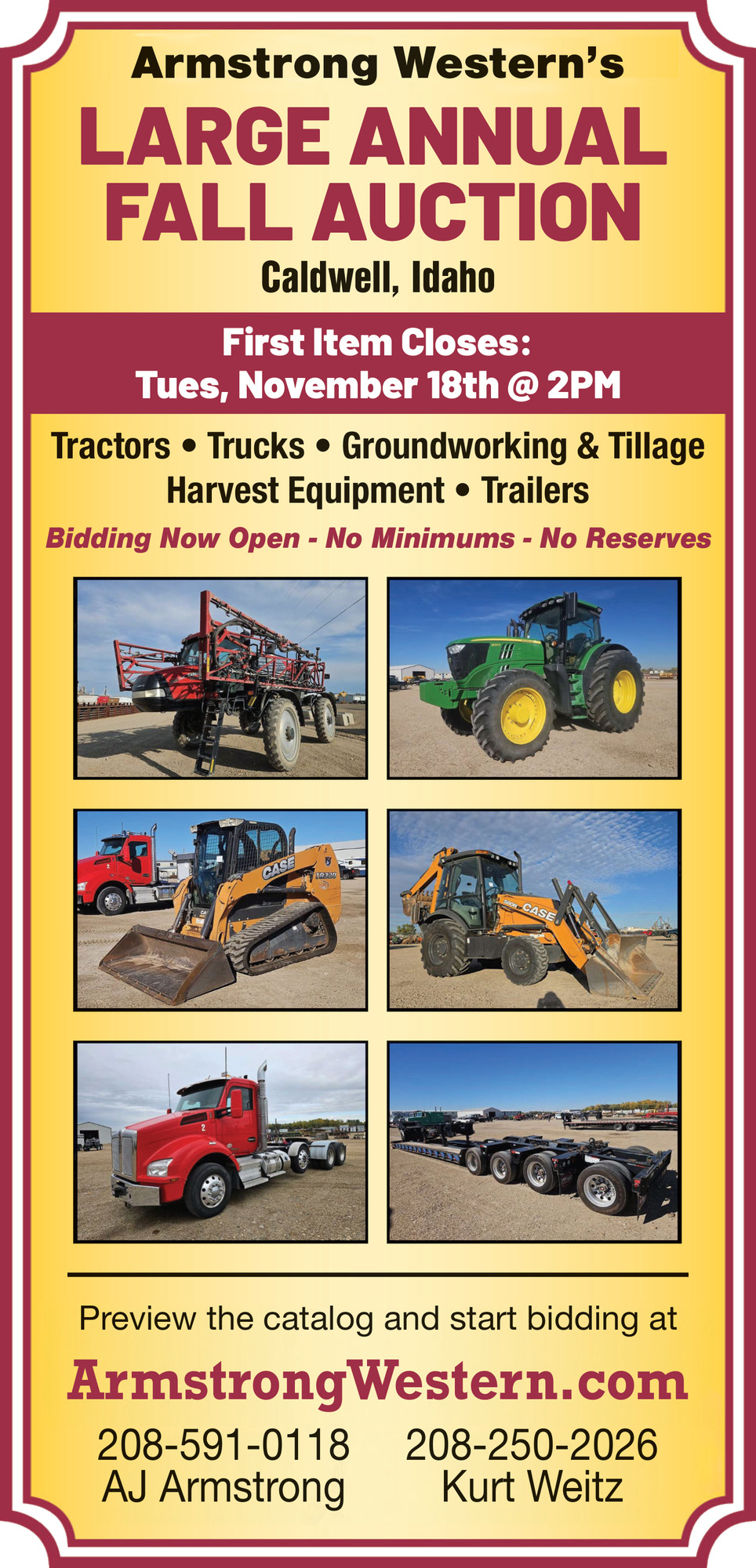 Nov 08, 2025. Armstrong Western LLC Auction Ads from Idaho Press Auctions